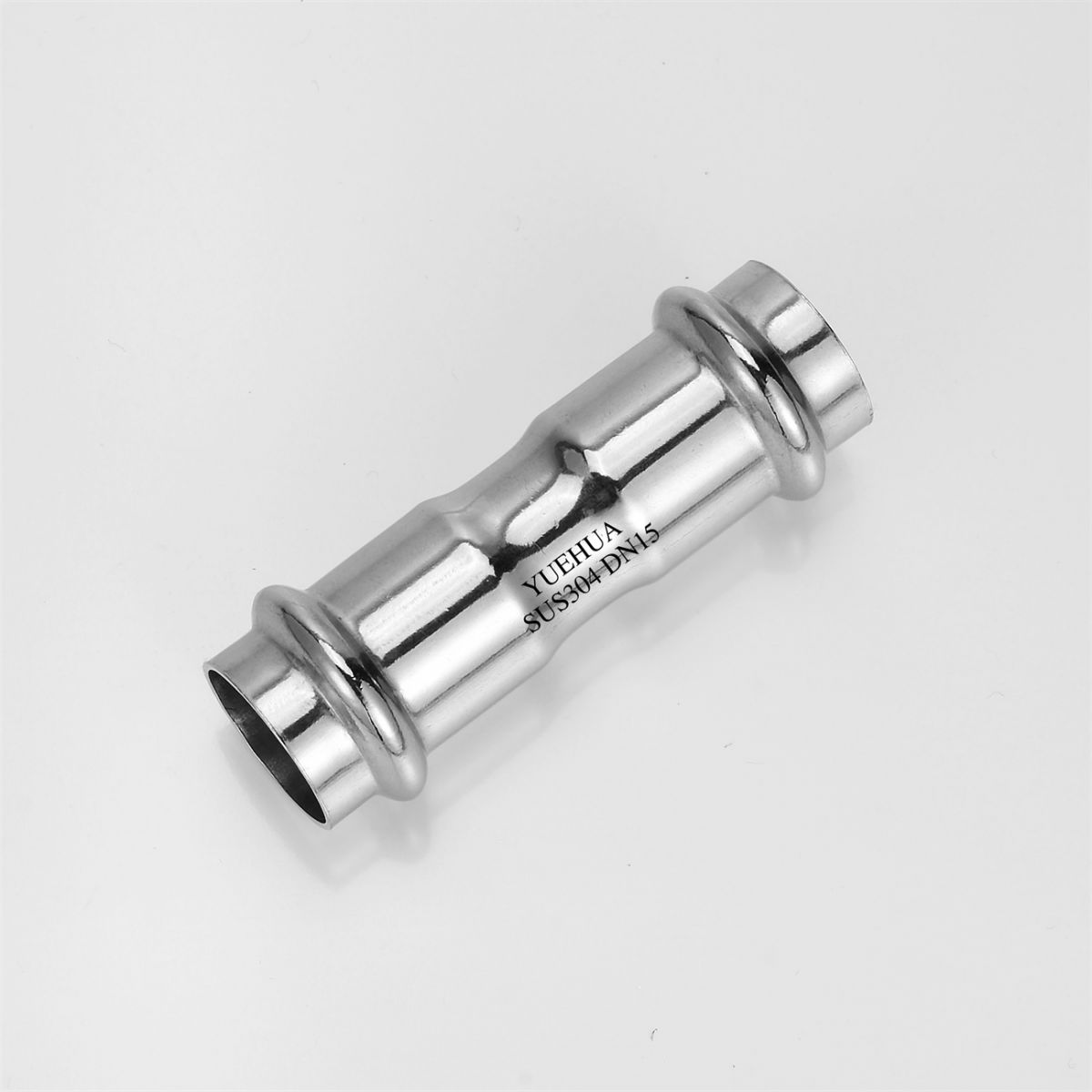 安装时先将管材端部插入带有O型密封圈的管件乘口,通过强行挤压使不锈钢管件及插入的管材由与圆形变为六方形,变形后管材与管件之间的摩擦力增大实现抱紧;0型密封圈因受到挤压变形后产生弹性从而在连接部位起到密封作用。
